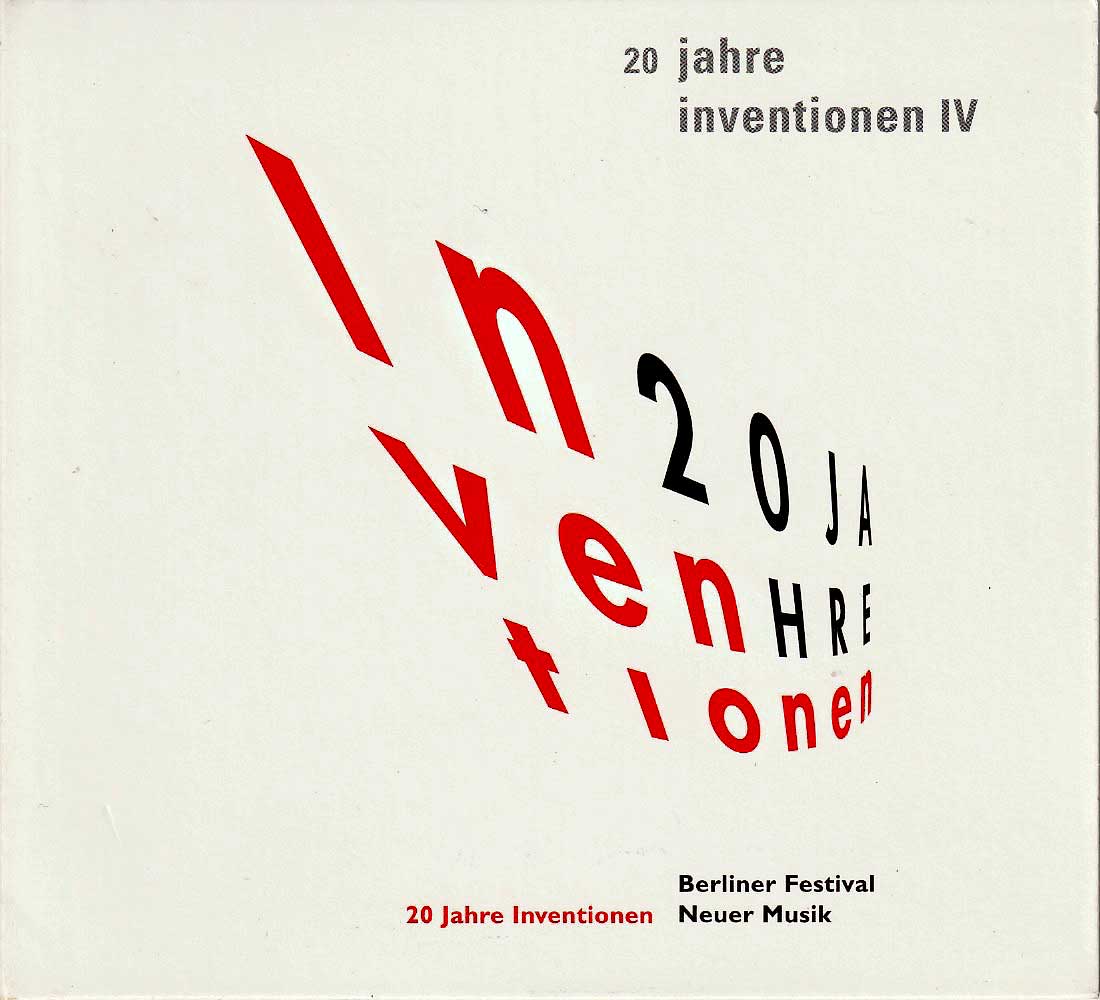 | I got involved something I realise… Klangenvironment (Gruppenarbeit) Ausschnitt aus der UA vom 26.6. bis 7.7.2002 bei 20 Jahre Inventionen aus der ehemaligen Staatsbank Berlin veröffentlicht auf : 20 Jahre Inventionen IV © 2004 by Berliner Künstlerprogramm des DAAD — DAAD 205-1 |